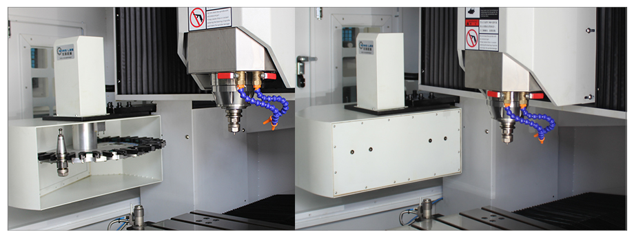 自動換刀系統(tǒng):本機標配自動換刀系統(tǒng),該系統(tǒng)具備高速自動換刀功能,換刀速度快且刀庫容量大,能夠有效提升加工效率,節(jié)約人力成本。